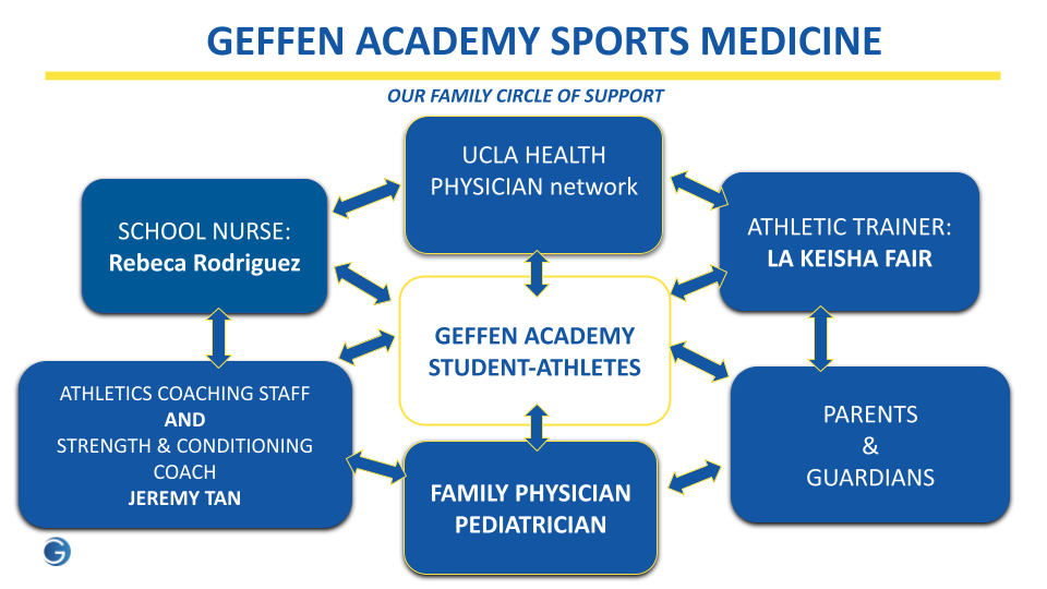 Our on-site Sports Medicine Team puts our student-athletes at the center of everything they do. Our full-time Athletic Trainer is networked with resources on the main UCLA Campus and through the UCLA Health network. Our Strength & Conditioning Program supports our student-athletes by providing a pre-season workout regimin under the guidance of our full-time CSCS Educator. |