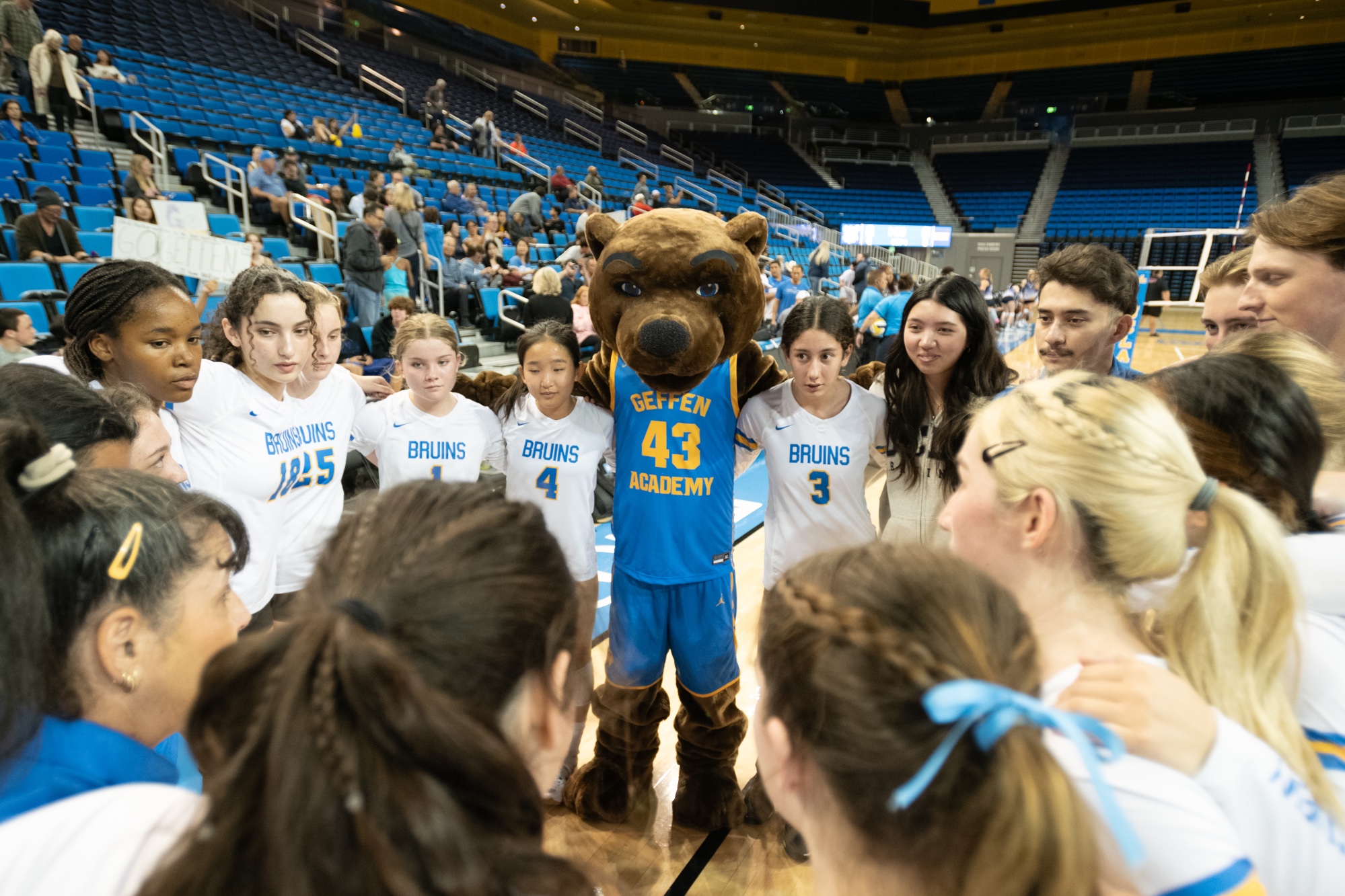 Drake Stadium is the home of UCLA’s track and field team and Geffen Acaddemy’s practice facility. The grass infield is named Marshall Field. Widely considered one of the finest playing surfaces in the country, Marshall Field is a 75-yard by 120-yard soccer surface. The track is a European 400-meter nine-lane (48″ width lane) with a 136 degree radius on the turn. The stadium provides seating for 11,700 spectators. Pauley Pavilion is regarded as one of the finest all-around collegiate facilities in the nation. It is the primary facility for UCLA men’s and women’s basketball, men’s and women’s volleyball, and women’s gymnastics. Pauley Pavilion contains seating for approximately 13,800 spectators and has hosted a Geffen Academy CIF Playoff Volleyball contest, and is the Geffen Academy commencement facility. Spieker Aquatic Center includes a 52-meter by 25-yard all-deep water pool with a bulkhead. The aquatics center features 3, 5, 7.5, and 10-meter platforms on a diving tower as well as one and three-meter springboards. There are locker rooms for both men’s and women’s teams in addition to permanent seating for spectators.  This is the host venue for the annual Coastal League Swimming Championships.