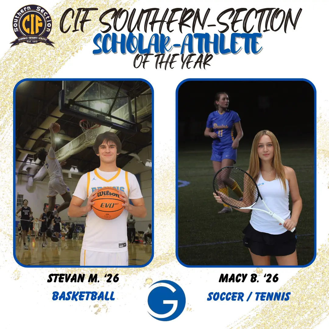 LOS ALAMITOS— Geffen Academy seniors Macy B. and Stevan M. have been recognized among the CIF Southern Section’s top student-athletes, earning “Student-Athlete of the Year” honors as part of the 38th annual CIF-SS–Ford Academic Awards.